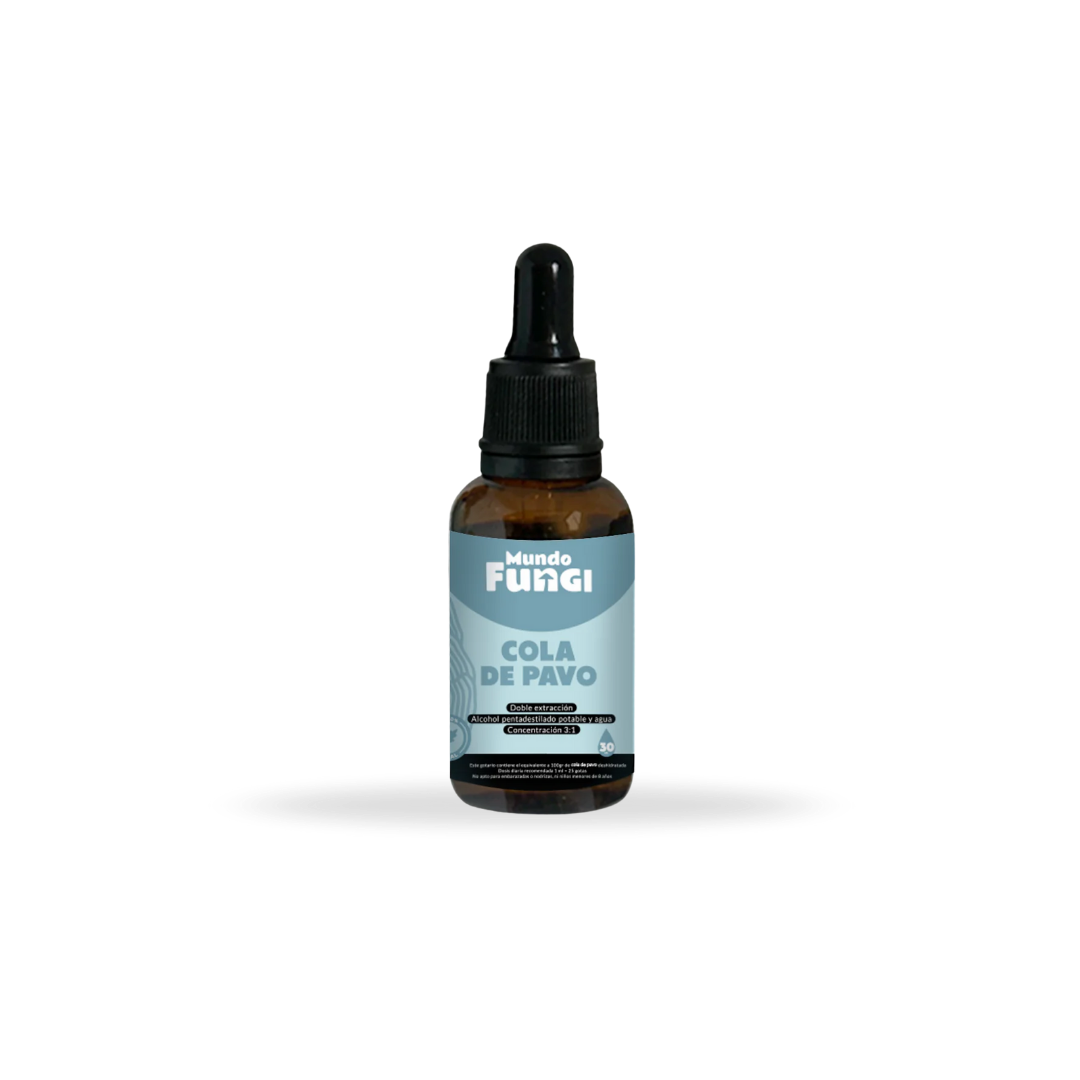 Cola de Pavo Mundo Fungi (gotas): extracto líquido de rápida absorción, reconocido por su acción inmunomoduladora.