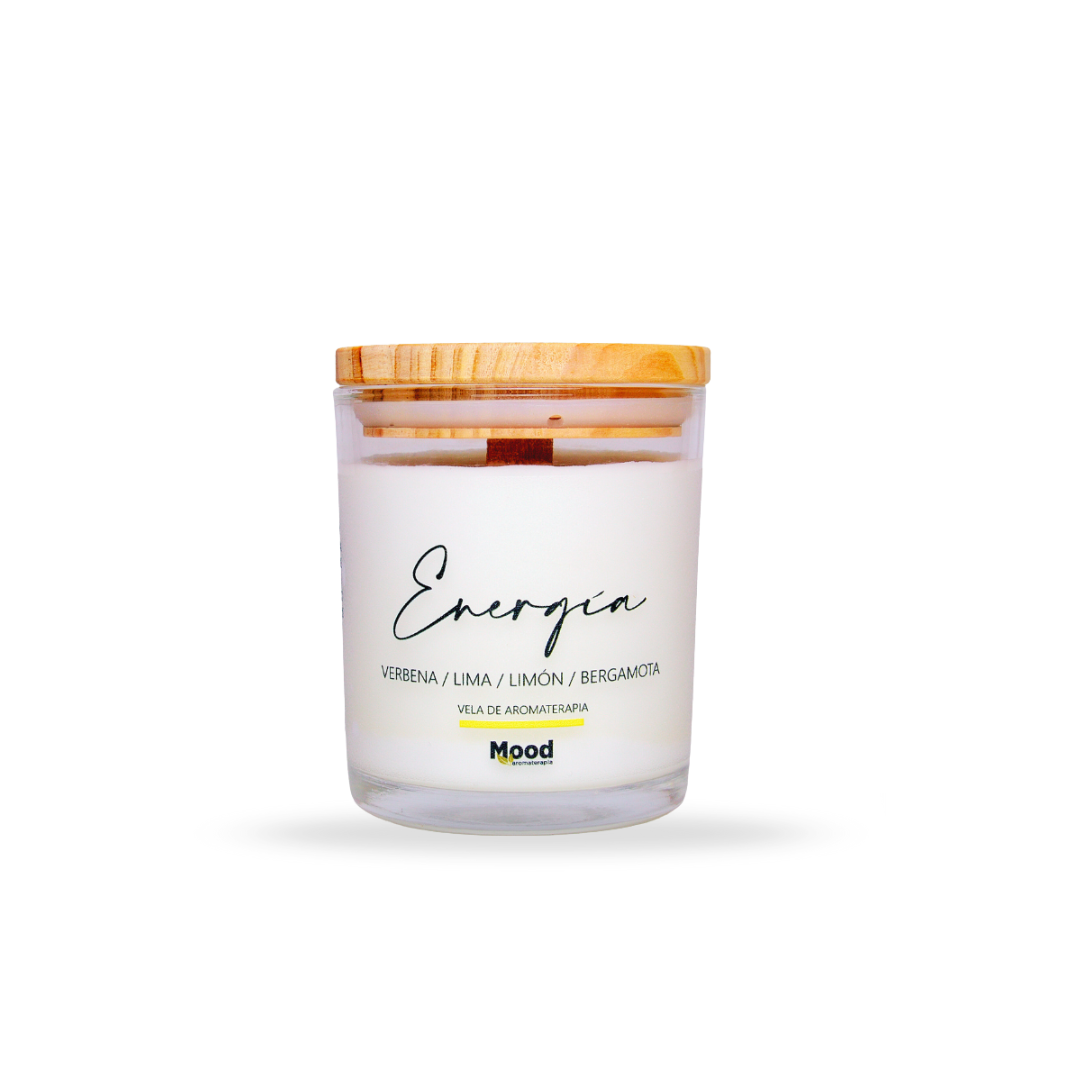 La Vela Energía de Mood Aromaterapia fue creada para llenarte de ánimo, motivación y alegría, con una mezcla única de aromas cítricos, frutales y florales que despiertan tus sentidos y revitalizan tus espacios.